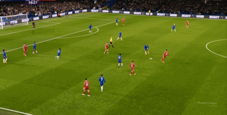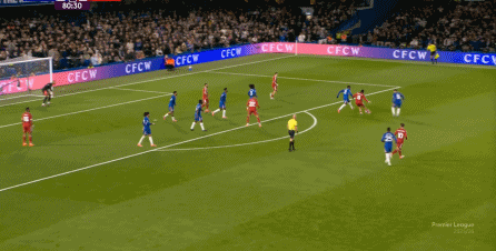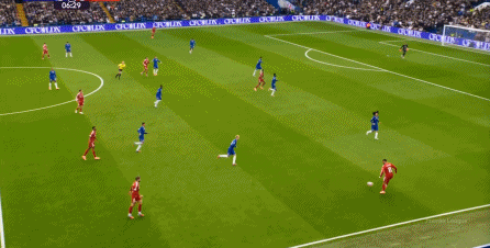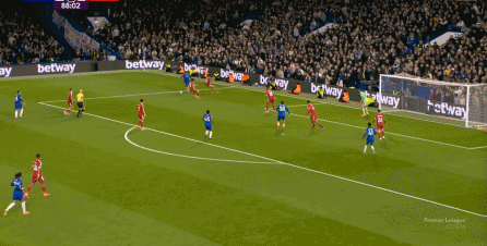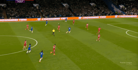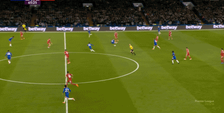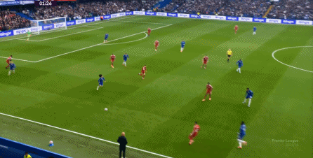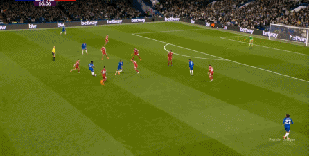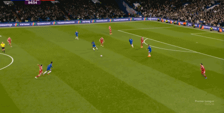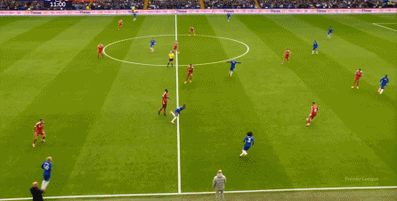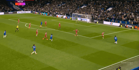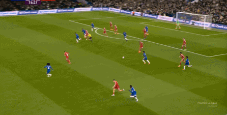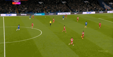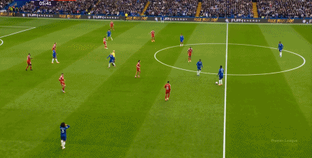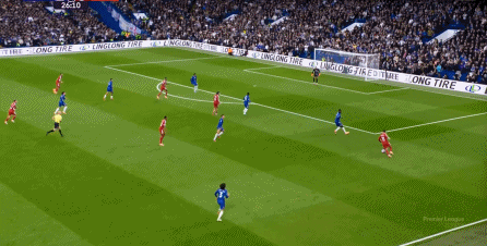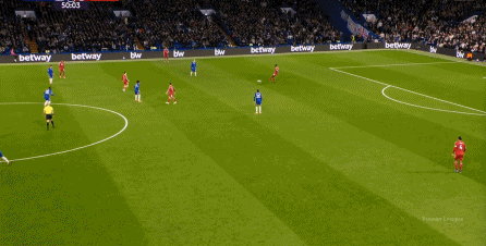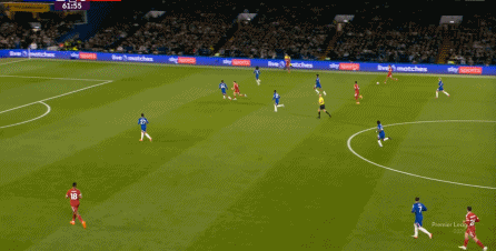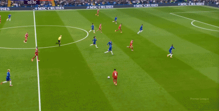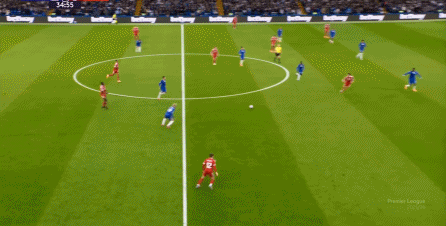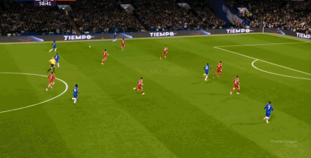 理论上,遇到切尔西这样连续换上替补后卫的时候,就应该直接将压力施加到后卫线身上,通过不断对抗、冲刺来打这些替补球员跟不上节奏的问题,但利物浦的前场球员恰好不是这种类型的进攻球员,所以在下半场末段,利物浦已经出现了弹不出去的问题: