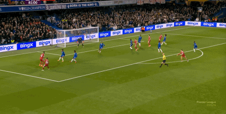 而在80分钟之前:切尔西的应对方式只能是通过加纳乔这一侧送出传中: