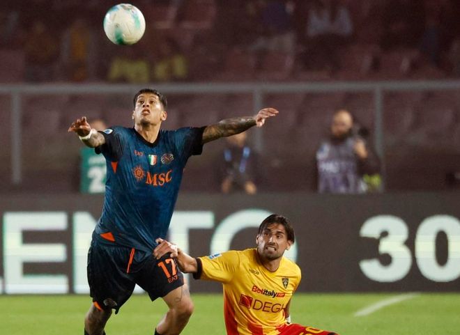 本场比赛那不勒斯排出了433阵型。诺阿-朗、卢卡和波利塔诺的进攻三叉戟联袂出击。埃尔马斯、吉尔摩和安古伊萨搭档3中场。奥利韦拉、布翁焦尔诺、胡安-热苏斯和迪洛伦佐4后卫首发出战。瓦尼亚-米林科维奇-萨维奇担任首发门将。那不勒斯首发阵容总身价2.27亿欧元。而莱切首发阵容总身价只有3810万欧元。