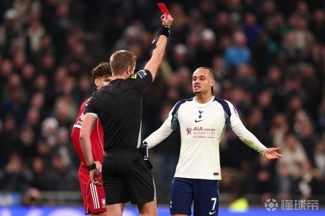 北京时间12月21日,在热刺与利物浦的比赛中,热刺球员哈维-西蒙斯踩踏自己荷兰国家队的队友范戴克,被裁判直红罚下。